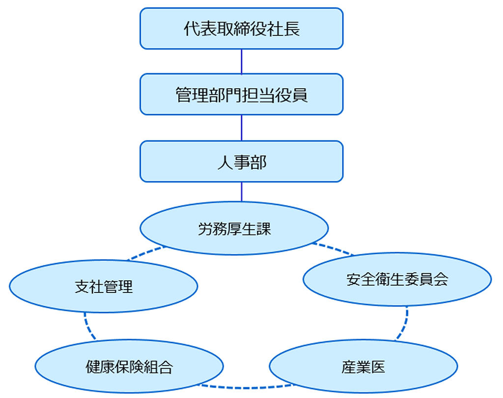 社員の労働安全・衛生に関する事項を審議・検討するため、月に一度本社・各支社にて法令に基づき安全衛生委員会を開催し、改善を図っています。