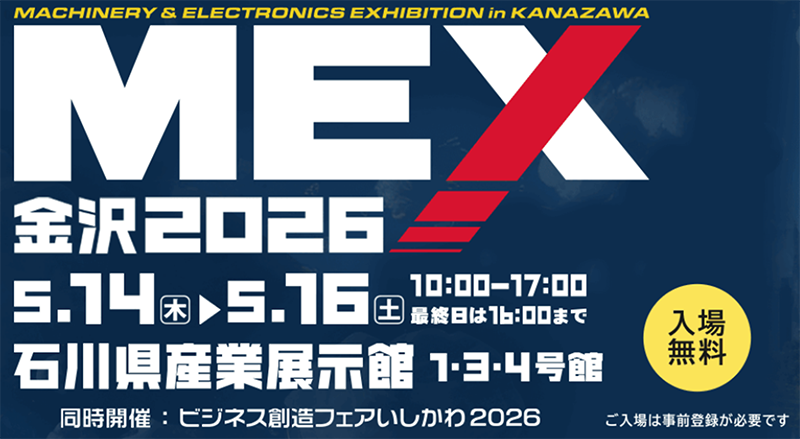 5月14日(木)~16日(土)に石川県産業展示館で開催されます『MEX金沢2026』に出展致します。